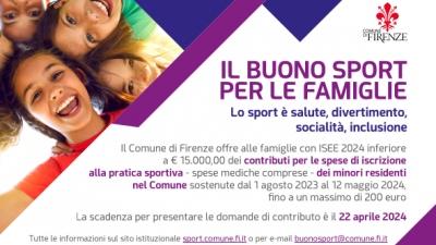 Online la modulistica per richiedere un contributo per i costi sostenuti per la pratica sportiva dei minorenni. Scadenza invio domande: 22 aprile